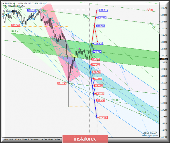 EUR/JPY h4. Варианты развития движения 15_22 января 2019 г. Анализ APLs & ZUP