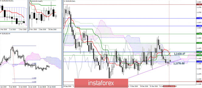 Поддержки 1,1370-50 (месячный Сенкоу Спан А + дневной Сенкоу Спан А + трендовая линия) продолжают сдерживать развитие ситуации. Преодоление силы притяжения и пробой зоны поддержек может привести к новому активному этапу снижения. При этом понижательные ориентиры остаются прежними – промежуточные экстремумы (1,1309 – 1,1270) и значимые уровни поддержки 1,1215 (минимальный экстремум) – 1,1186 (месячный Фибо Киджун). На днях тем временем сформировался мёртвый крест. В случае развития восходящей коррекции дневной Тенкан (1,1413) будет первым сопротивлением на пути быков, далее следует укреплённая зона сопротивлений 1,1420-47 (месячный Киджун + недельный Фибо Киджун + недельный Тенкан + дневной Киджун + дневной Сенкоу Спан Б).