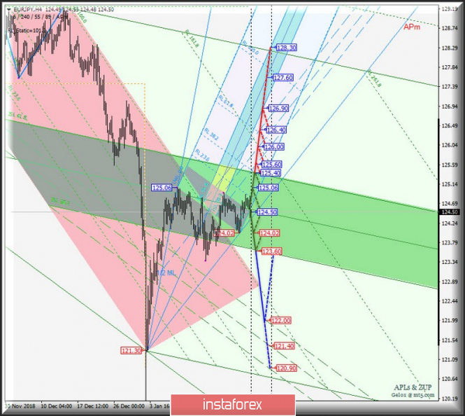 EUR/JPY h4. Варианты развития движения с 25 января 2019 г. Анализ APLs & ZUP