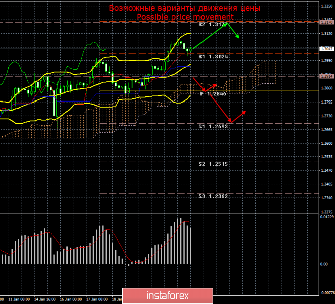 Британский фунт стерлингов в предпоследний торговый день недели, 24 января, минимально скорректировался, сохраняя восходящую тенденцию. На международном экономическом форуме в Давосе канцлер Австрии Себастьян Курц заявил, что Европа готова пойти навстречу Лондону, так как не хочет «жесткого» Brexit, но и Британия должна пойти навстречу ЕС. По сути, такое высказывание означает, что «жесткий» Brexit не нужен никому, а стороны будут торговаться и вести переговоры до тех пор, пока не договорятся либо пока у кого-то не лопнет терпение. Таким образом, дата 29 марта является не более чем формальностью. Ее с легкостью могут поменять на 29 декабря, например. Тем временем вовсю развивается политический кризис в Штатах, Трамп отказывается возобновлять работу государственных служб, если его проект строительства стены на границе с Мексикой не будет одобрен Конгрессом. «Шатдаун» в итоге продолжается, но, к большому нашему изумлению, доллар США снижается только в паре с фунтом стерлингов. Учитывая все проблемы Великобритании, здесь как раз более логично было бы увидеть рост доллара. С фундаментальной точки зрения ситуация по фунту сейчас крайне запутанная, а трейдерам предстоит решить, ситуация в какой стране сейчас хуже и где какие перспективы прослеживаются. Пока что побеждает фунт, но складывается впечатление, что ненадолго. Более ясная картина в техническом плане: восходящий тренд сохраняется, о коррекциях идеально сигнализирует индикатор MACD, поэтому участникам рынка остается только следовать за трендом.