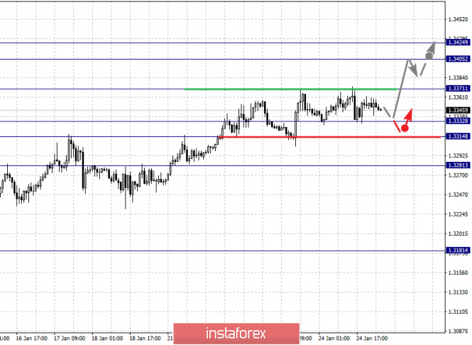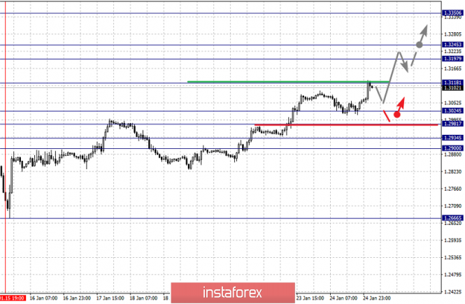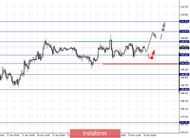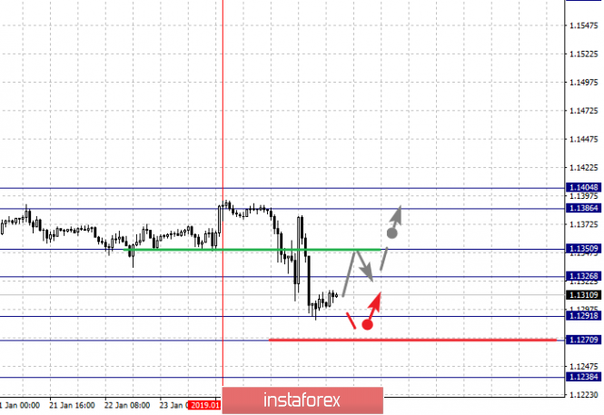 По паре Евро/Доллар цена оформила локальную структуру для нисходящего движения от 23 января, формирование восходящей структуры возможно после пробоя 1.1350. По паре Фунт/Доллар следим за восходящей структурой от 15 января, продолжения движения кверху ожидаем после пробоя 1.3118. По паре Доллар/Франк цена находится в корректировочной зоне от восходящей структуры 10 января, продолжения движения кверху ожидаем после пробоя уровня 0.9984. По паре Доллар/Иена продолжения развития восходящей тенденции ожидаем после пробоя 109.81. По паре Евро/Иена развития восходящей тенденции ожидаем после пробоя 125.15. По паре Фунт/Иена развития выраженного восходящего движения ожидаем после пробоя 144.50.