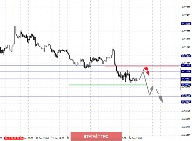 Краткосрочное восходящее движение возможно в коридоре 0.7107 – 0.7121, пробой последнего значения приведет к углубленной коррекции, здесь цель – 0.7143, этот уровень является ключевой поддержкой для нисходящей структуры.