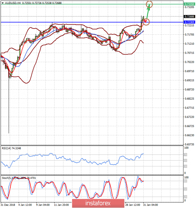 Пара AUDUSD находится выше уровня 0.7235. Закрепление выше этой отметки приведет к продолжению ее роста к 0.7335.