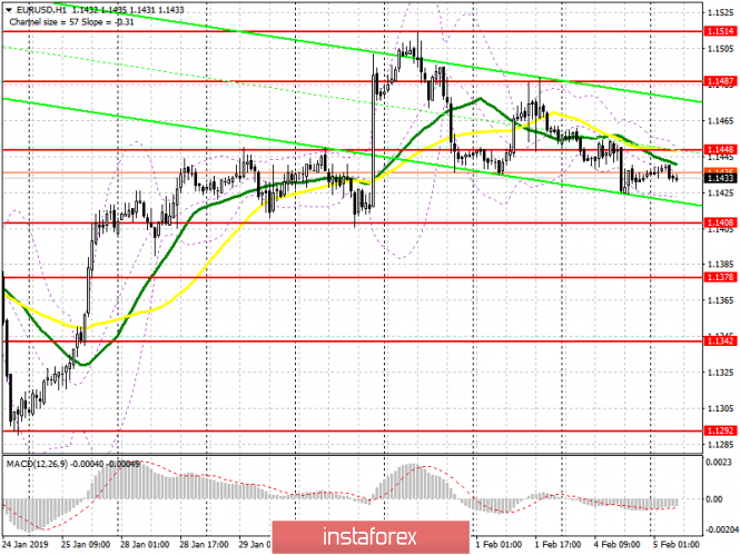 Евро хоть и снижается, но медвежий импульс очень слабый. Покупателям сегодня в первой половине дня необходимо вернуться на уровень сопротивления 1.1448, лишь выше которого спрос на EUR/USD возрастет, что приведет к обновлению максимума 1.1487, где рекомендую фиксировать прибыль. В случае очередной слабой статистики по еврозоне, к длинным позициям на снижении лучше всего присмотреться от крупной поддержки 1.1408 либо на отскок от минимума 1.1378.