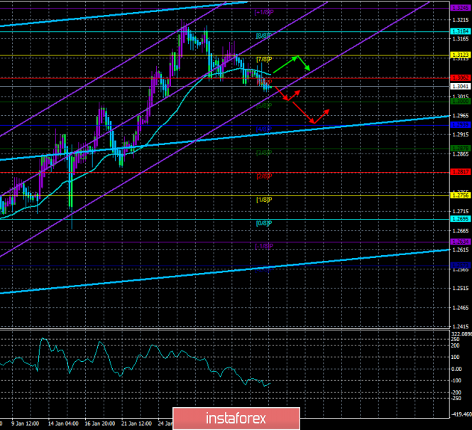 Валютная пара GBP/USD во вторник, 5 февраля, закрепилась ниже скользящей средней линии и продолжает не слишком сильное движение вниз. Тем временем главный переговорщик от ЕС Мишель Барнье сообщил, что ЕС не будет возвращаться к переговорам по условиям выхода Великобритании из альянса. По мнению Барнье, страховочный план – это единственный рабочий вариант по ирландской границе на текущий момент. При этом ЕС готов вести дальнейшую работу по альтернативным решениям, но только во время переходного периода. Ранее подобные высказывания исходили от других лидеров ЕС, включая Ангелу Меркель и Жен Клода Юнкера. Таким образом, это означает, что лидеры ЕС не намерены садиться за стол переговоров и идти на дополнительные уступки. В то же время британский парламент не готов принять план Brexit в том виде, в котором он есть сейчас. А камнем преткновения остается вопрос по североирландской границе. Интересно. Следующее голосование в парламенте назначено на 13 февраля. Что может измениться за следующие 8 дней? Вряд ли многое. Типичная ситуация, которая называется «пат». Однако одной из сторон все же придется пойти на уступки, иначе нас ждет «жесткий» вариант Brexit, который Великобританию также не устраивает. Продолжает следить за развитием ситуации.