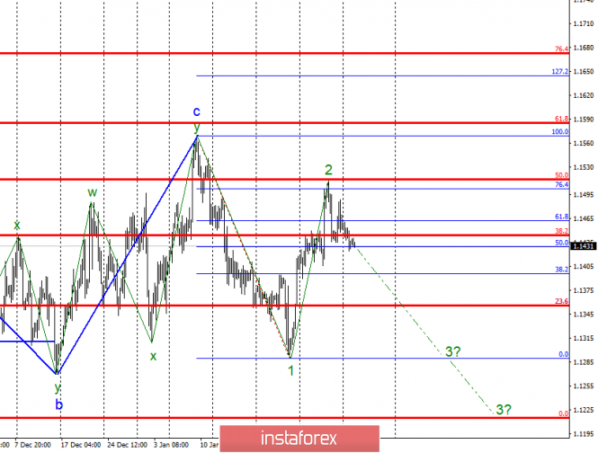 Пара предположительно перешла к построению нисходящей волны 3. Таким образом, сейчас я по-прежнему рекомендую продажи инструмента с целями, расположенными около отметок 1,1289 и 1,1215, что приравнивается к 0,0% и 0,0% по Фибоначчи. Уровень 50,0% по старшей сетке Фибоначчи является опорным, как для волны 2, так и для всего дальнейшего развития нисходящего участка тренда. Над ним можно расставлять защитные ордера.Материал предоставлен компанией InstaForex - www.instaforex.com