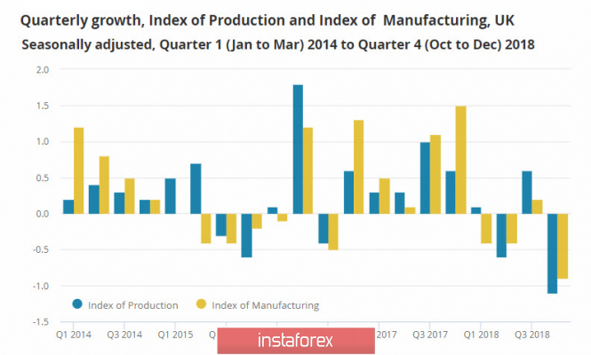 Фунт негативно отреагировал на опубликованные в понедельник статистические данные, поскольку все они без исключения оказались хуже прогнозов, что явилось неприятной неожиданностью для игроков. Предварительные данные по темпам роста ВВП в 4 кв. 2018 г. составили 0.2%, годовые темпы роста 1.3%, что хуже, чем 1.6% кварталом ранее. Основной рост отмечен по сектору услуг, что же касается строительства и промышленного производства, то замедление значительное.