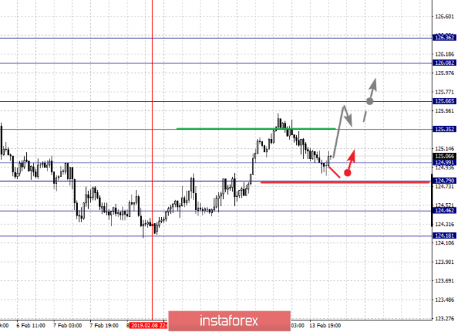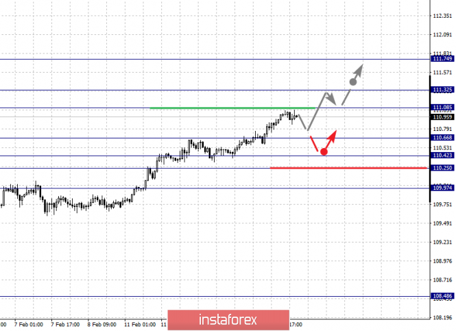 По паре Евро/Доллар цена формирует локальный потенциал для продолжения нисходящей тенденции от 13 февраля, развития данной структуры ожидаем после пробоя 1.1242. По паре Фунт/Доллар продолжения движения книзу ожидаем после пробоя 1.2828. По паре Доллар/Франк продолжения движения кверху ожидаем после прохода ценой шумового диапазона 1.0086 – 1.0096. По паре Доллар/Иена продолжение движения кверху ожидаем после пробоя 111.08, уровень 110.66 ключевая поддержка. По паре Евро/Иена развития восходящей структуры от 8 февраля ожидаем после пробоя 125.35, уровень 124.79 ключевая поддержка. По паре Фунт/Иена ситуация находится в равновесном состоянии.