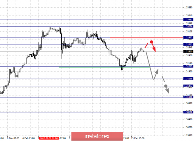 По паре Евро/Доллар ключевыми уровнями в масштабе Н1 являются: 1.1342, 1.1318, 1.1297, 1.1281, 1.1242, 1.1213 и 1.1178. Здесь цена формирует локальную структуру для продолжения движения книзу от 13 февраля. Продолжения движения книзу ожидаем после пробоя 1.1242, в данном случае цель – 1.1224, проход ценой шумового диапазона 1.1224 – 1.1213 должен сопровождаться выраженным нисходящим движением, здесь потенциальная цель – 1.1178.