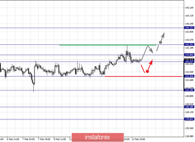 Консолидированное движение возможно в коридоре 142.53 – 142.86, пробой последнего значения приведет к углубленной коррекции, здесь цель – 143.35, этот уровень является ключевой поддержкой для низа.