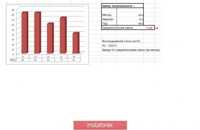 Волатильность текущего времени составляет 41 пункт. Вероятно предполагать, что в случае пробоя значения 1,1340, волатильность может и дальше продолжить свой рост.