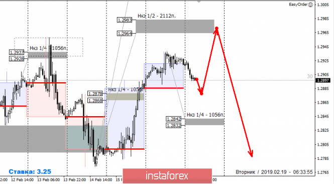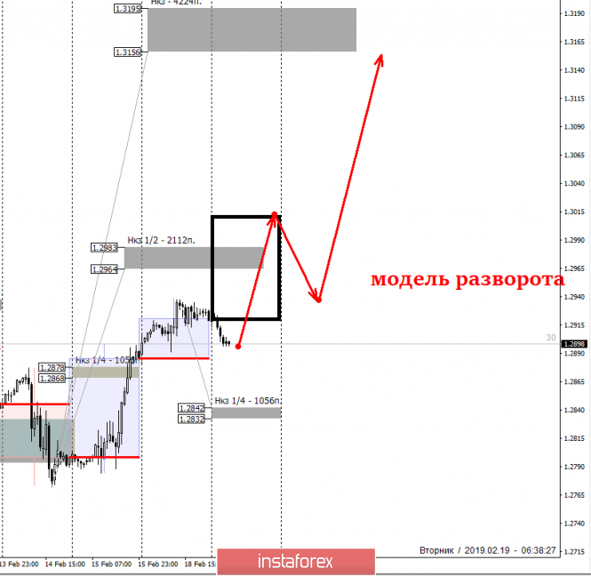 Альтернативная модель получит развитие в случае, если пара сможет пробить и закрепиться выше уровня 1.2983 на сегодняшней американской сессии. Это позволит говорить о завершении нисходящего импульса, что даст возможность искать покупки уже на завтрашней европейской сессии в сторону нового импульса.