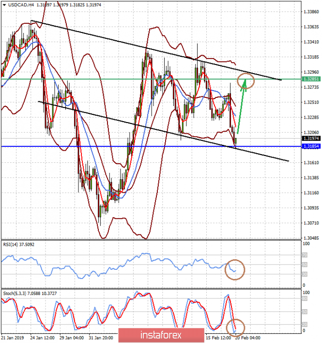 Пара USDCAD находится выше уровня 1.3185. Если ослабление доллара приостановится, а котировки нефти развернутся вниз на фоне публикации данных по запасам нефти и нефтепродуктов в США, то цена может развернуться вверх и устремиться к 1.3285.