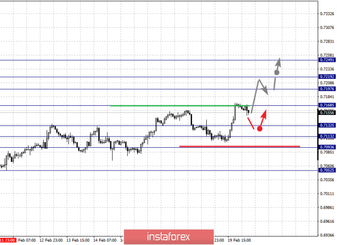 Краткосрочное нисходящее движение возможно в коридоре 0.7132 – 0.7113, пробой последнего значения приведет к углубленной коррекции, здесь цель – 0.7093, этот уровень является ключевой поддержкой для восходящей структуры.