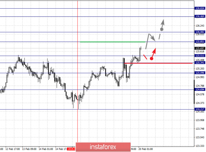 Краткосрочное нисходящее ожидаем в коридоре 125.51 – 125.34, пробой последнего значения приведет к углубленной коррекции, здесь цель – 125.09, этот уровень является ключевой поддержкой для верха.