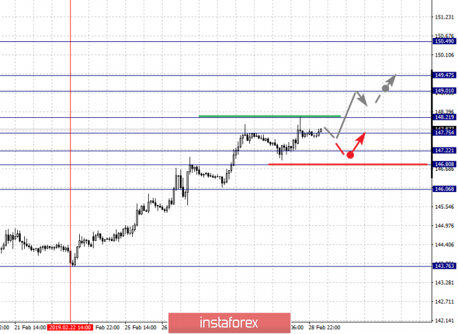 Краткосрочное нисходящее движение возможно в коридоре 147.22 – 146.80, пробой последнего значения приведет к углубленной коррекции, здесь цель – 146.06, этот уровень является ключевой поддержкой для верха.