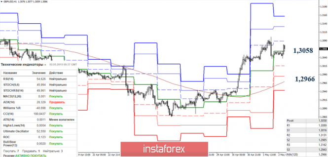 О преимуществе игроков на повышение в настоящий момент говорят многие технические инструменты, в том числе технические индикаторы активно поддерживают продолжение покупок. Ориентирами внутри дня являются сейчас классические Пивот-уровни 1,3089 – 1,3131 – 1,3162. Зона нисходящей коррекции расположена в текущей ситуации в рамках 1,3058 (центральный Пивот-уровень дня) – 1,2966 (недельная долгосрочная тенденция). Закрепление ниже может привести к смене сложившегося преимущества и новым медвежьим перспективам.