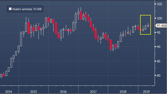 В настоящее время аналитики отмечают, что курс доллара по отношению к корзине из шести мировых валют – главных торговых партнеров США – растет три месяца кряду. Эксперты полагают, что «быкам» по доллару США можно рассчитывать на подъем и в четвертом месяце, то есть в мае. Согласно исследованию специалистов крупнейшего банка JPMorgan Chase, за последнее десятилетие индекс доллара США по итогам мая рос не менее восьми раз. Для американской валюты это самый сильный месяц в году, подчеркивают аналитики.