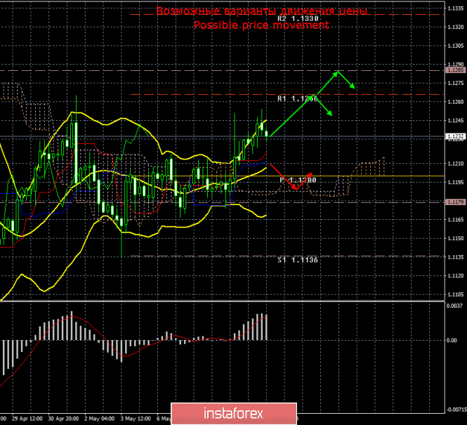 Пара EUR/USD возобновила движение вверх. Таким образом, в начале следующей недели будут актуальными длинные позиции с целями уровни 1,1266 и 1,1285 до разворота индикатора MACD вниз, что укажет на виток коррекции.