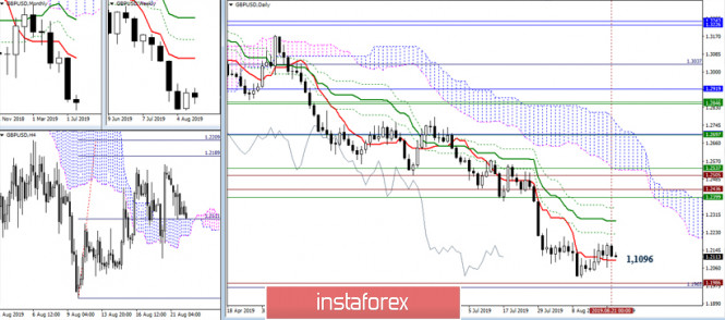 Торможение и работа с дневным краткосрочным трендом (1,2096), в качестве ключевой поддержки, продолжается. Неопределённость и консолидация сохраняют актуальность сделанных ранее выводов о возможностях развития движения. Развитие восходящего коррекционного движения в сложившейся ситуации приведёт к тестированию сопротивлений дневного креста Ишимоку (1,2221 – 1,2286 – 1,2350). Потеря поддержки дневного Тенкана (1,2096) позволит вновь рассмотреть возможности для усиления медвежьих позиций, основная задача которых будет сводиться к преодолению зоны поддержек расположенной в пределах 1,2014 – 1,1986 – 1,1965 (минимальный экстремум + первый целевой ориентир недельной цели на пробой облака + исторический уровень).