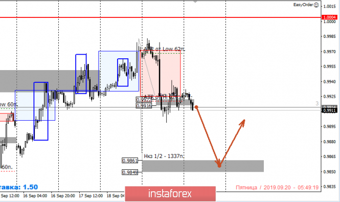 Нисходящее движение является коррекцией, целью которой можно считать НКЗ 1/2 0.9861-0.9849. Достижение этой зоны позволит зафиксировать часть профита, а остальную часть продаж перевести в безубыток на случай продолжения падения и смены среднесрочного приоритета.