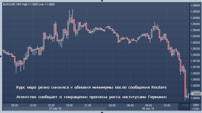 Потери «европейца» после информации агентства Reuters об ухудшении прогноза роста экономики Германии на текущий год составили 0,50%, до $1,0886. Напомним, что крупнейшие экономические институты ожидают от локомотива европейской экономики только незначительного подъема. В 2019 году, согласно пересмотренным данным, прогнозируется рост на 0,5% по сравнению с прежним показателем в 0,8%, зафиксированным в апреле. В следующем году ожидается подъем экономики Германии на 1,1%, что хуже апрельского прогноза в 1,8%. Расчеты на 2021 год предусматривают экономический рост в ФРГ в пределах 1,4%.