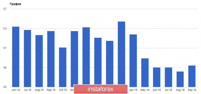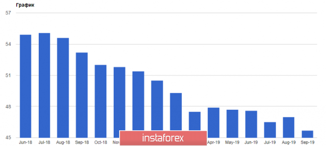 Продолжающая торговая война США и Китая, а также замедление экономического роста, вместе с резким сокращением экспорта - все это привело к замедлению производственной активности в развитых странах. Однако больше всего проблем наблюдается в еврозоне. В отчете указано, что индекс менеджеров по снабжению PMI для производственной сферы еврозоны в сентябре снизился до уровня 45,7 пункта против 47 пунктов в августе. Напомню, что значение индекса ниже 50 пунктов указывает на сокращение активности. Экономисты прогнозировали данные показатель на уровне 45,6 пункта.
