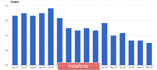 Согласно опубликованным официальным данным, в сентябре 2019 года, по сравнению с таким же периодом прошлого года, потребительские цены в еврозоне выросли лишь на 0,9% после роста на 1,0% в августе. Базовый индекс потребительских цен, который не учитывает волатильные категории товаров, за тот же период вырос на 1%. Целевой уровень ЕЦБ составляет чуть ниже 2%.