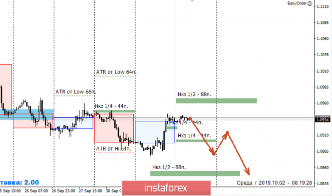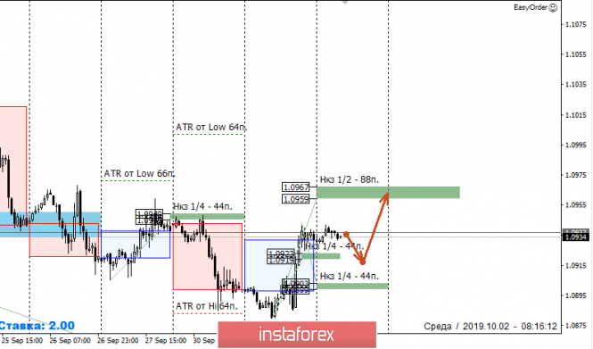 Вчера произошла остановка нисходящего движения и появление крупного спроса. Поглощения медвежьего движения понедельника не произошло, однако, мы наблюдаем закрытие вчерашних торгов выше НКЗ 1/4 1.0923-1.0919, что говорит о возможной смене динамики. Первой целью роста является НКЗ 1/2 1.0967-1.0959.