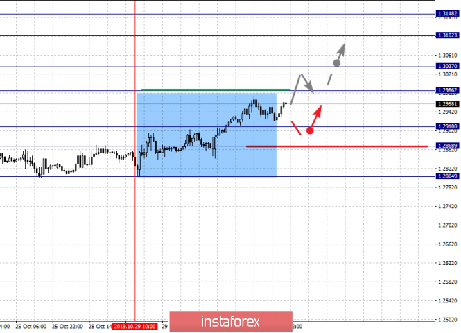 Краткосрочное нисходящее движение, ожидаем в коридоре 1.2910 – 1.2868, отсюда высока вероятность разворота к верху, пробой уровня 1.2868 приведет к развитию нисходящей тенденции, в данном случае потенциальная цель – 1.2804.