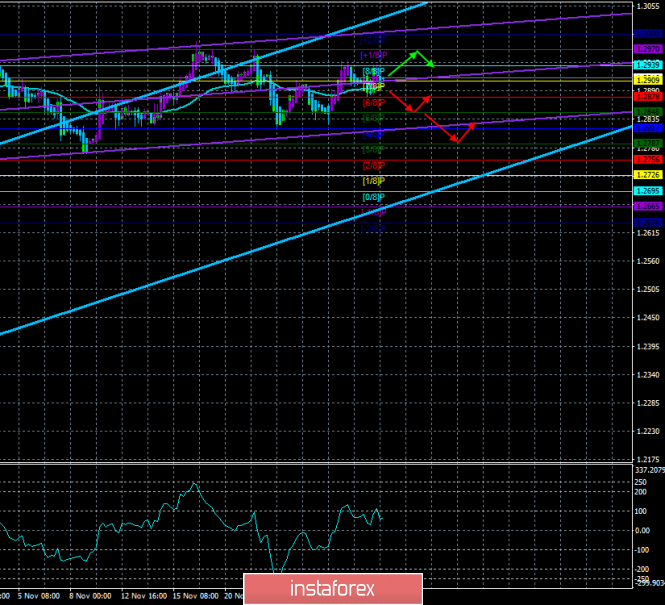 Сегодня, 02 декабря, в Великобритании также будет опубликован индекс деловой активности в секторе производства. Согласно прогнозам экспертов, его значение не изменилось в ноябре и составит 48,3. Не самое, кстати, слабое значение, если смотреть на все страны ЕС (а Великобритания из-за не реализованного Brexit по-прежнему относится к Евросоюзу), однако оно все равно по-прежнему свидетельствует о спаде в области производства. Таким образом, фундаментальный фон по-прежнему остается на стороне американской валюты, а трейдеры по-прежнему не обращают на него никакого внимания. Таким образом, даже неважно, какое именно сегодня будет значение у индекса деловой активности. Следует дожидаться того момента, когда котировки пары фунт/доллар покинут боковой канал. Когда трейдеры вновь начнут отрабатывать фундаментальные данные. Когда вновь начнут обращать внимание на провальную макроэкономическую статистику из Великобритании. До всего вышеперечисленного, вялое движение внутри бокового диапазона будет сохраняться. А все участники рынка прекрасно понимают, что торговать внутри «боковика», когда пара не реагируют на новости, крайне неудобное занятие.