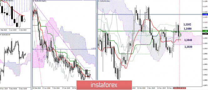 Движение пары за прошлые сутки не добавило определённости. Неопределённость и консолидация сохраняются. Обозначенные ранее уровни поддержки и сопротивления продолжают стоять на страже развития ситуации. Для игроков на повышение по-прежнему значение имеют сопротивления 1,1080 (недельный Тенкан + недельный Фибо Киджун + дневной Киджун) и 1,1102 (дневной Фибо Киджун). Для игроков на понижение ключевой поддержкой остаётся нижняя граница дневного облака (1,1030), при этом как промежуточный уровень поддержки можно отметить дневной краткосрочный тренд (1,1048).