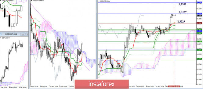 Несмотря на вчерашний перехай, игроки на понижение сумели не только сохранить торможение, но и сформировать предпосылки для развития полноценной нисходящей коррекции. Сейчас вопрос лишь в том, позволят ли это сделать, возможно, на фунт у рынка другие планы. Если игроки на повышение всё же сумеют ограничиться в ближайшее время лишь торможением и консолидацией, то после преодоления 1,3167 (месячного среднесрочного тренда) будет открыта дорога к следующему сопротивлению данного участка – месячному облаку, нижняя граница которого сейчас расположена в районе 1,3350. В случае развития нисходящей коррекции первым ориентиром от старших таймов является дневной Тенкан, сегодня это 1,3029.