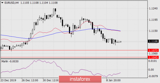 На четырёхчасовом графике осциллятор Марлин указывает на небольшое желание рынка откорректировать вверх. В целом же настроение на данном графике сохраняется понижающееся.