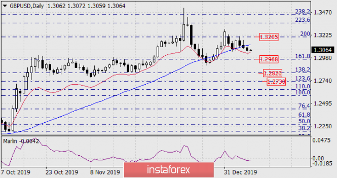 Сегодня публикуются данные по занятости в США, прогноз по новым рабочим местам в несельскохозяйственном секторе за декабрь составляет 162 тыс, это может стать стимулом к дальнейшему снижению фунта к уровню Фибоначчи 161,8% на цене 1.2968. Но и в этом случае скорость снижения фунта может оказаться недостаточной для преодоления индикаторной линии баланса. Если к открытию понедельника она также сохранится ниже цены, то на следующей неделе возможен коррекционный рост британского фунта. Уровень 1.2968 с технических позиций силён.