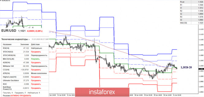 В настоящий момент игроки на рынке заняты борьбой за ключевые рубежи младших таймов. В сложившихся условиях недельная долгосрочная тенденция и центральный Пивот-уровень дня объединяют свои усилия в районе 1,1026-20. Работа выше данных уровней будет усиливать игроков на повышение. Возврат и закрепление ниже будет увеличивать медвежьи шансы. Силу и значимость данным рубежам придаёт уровень встреченной поддержки старших таймов (1,1021). Другие поддержки внутри дня расположены сегодня на 1,1012 (S1) – 1,0994 (S2) – 1,0980 (S3). Сопротивления классических Пивот-уровней находятся сейчас на 1,1044 (R1) – 1,1058 (R2) – 1,1076 (R3).