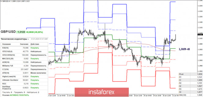 Игроки на повышение преодолели ключевые сопротивления и сейчас используют своё преимущество. На Н1 наблюдаем восходящий тренд в своей активной фазе. Повышательными ориентирами внутри дня сейчас являются сопротивления классических Пивот-уровней, которые расположены на 1,3141 (R1) – 1,3191 (R2) – 1,3273 (R3). Уровни, определяющие наличие предпочтений и преимуществ, сегодня объединяют свои усилия в районе 1,3059-48 (недельная долгосрочная тенденция + центральный Пивот-уровень). Закрепление ниже повлияет на действующий баланс сил и создаст перспективы для снижения к понижательным ориентирам. Понижательные ориентиры для младших таймов в виде поддержек классических Пивот-уровней в сложившейся ситуации можно отметить на 1,3009 (S1) – 1,2927 (S2) – 1,2877 (S3).