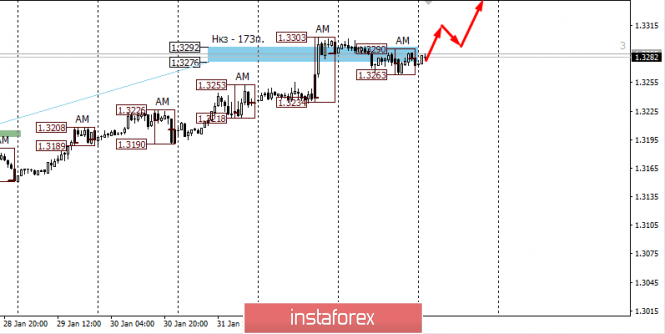 С начала текущей недели происходит тест недельной КЗ 1.3292-1.3276. Это дает возможность для фиксации ранее открытых покупок. Разворотная модель пока не сформировалась, поэтому полностью выходить из длинной позиции преждевременно. Вероятность продолжения роста все еще высока.