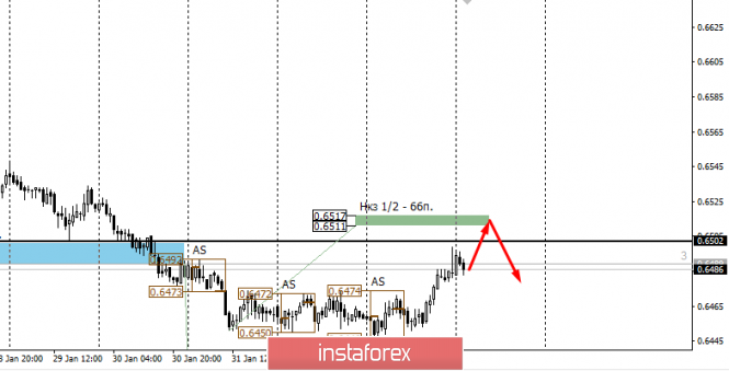 Вчерашний рост был основной моделью, так как пара торговалась за пределами среднего хода. Уровень 0.6502 остается основной целью и находится в рамках дневного хода. Чуть выше уровня располагается определяющая зона сопротивления НКЗ 1/2 0.6517-0.6511. Достижение этой зоны позволит определить дальнейший приоритет.