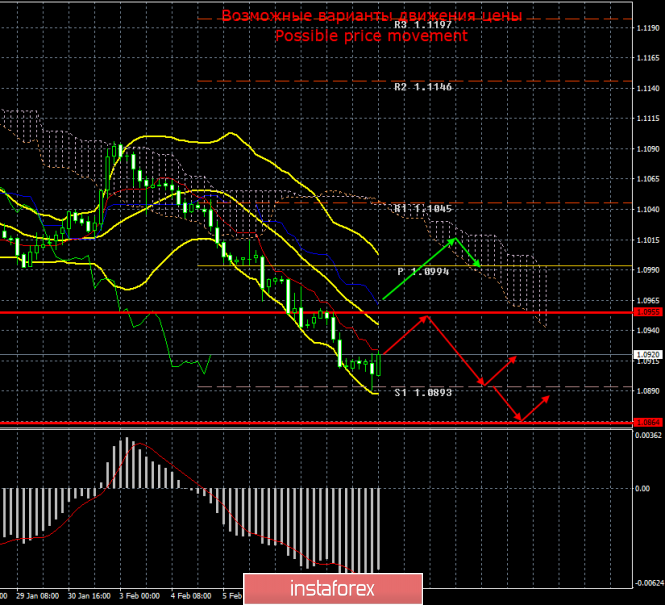 Валютная пара EUR/USD во вторник, 11 февраля, идеально отработала уровень поддержки 1,0893 и отскочила от него, не сумев закрепиться ниже. Таким образом, сегодня может начаться долгожданная коррекция, которую мы ждали еще в пятницу и в понедельник. Нельзя сказать, что сегодня коррекция была ожидаема, а фундаментальный фон способствовал ее началу, так как на сегодня из значимых событий запланированы были только выступления главы ЕЦБ Кристин Лагард в Европарламенте и Джерома Пауэлла в Конгрессе. Причем выступление госпожи Лагард еще даже не началось. Ни одной значимой макроэкономической публикации на сегодня не было запланировано ни в Штатах, ни в Евросоюзе.