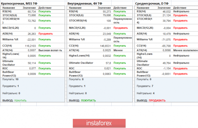 Анализируя разный сектор таймфреймов (ТФ), мы видим, что за счет процесса колебания 1,2885/1,3000 показатели технических инструментов относительно минутных и часовых интервалов заняли переменную позицию [Покупка/Продажа]