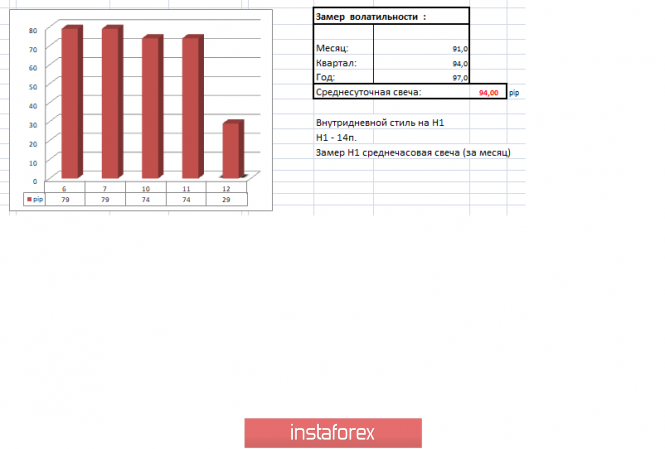 Волатильность текущего времени составляет 29 пункта, что является низким значением. Вероятно предположить, что если процесс фиксации еще сохранится, то аномальная активность в пределах значения 74 pip сохранится.
