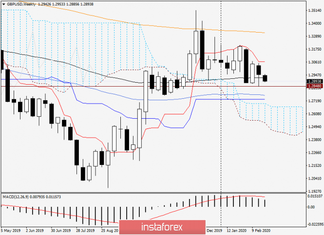 Если рассматривать альтернативный восходящий сценарий, то в случае роста серьёзной преградой может стать сильная ценовая зона 1.3000-1.3050, где психологический уровень и максимальные значения прошлой недели. Впрочем, по моему мнению, бычьи настроения по gbp/usd усилятся только после истинного пробоя линии Тенкан, которая сейчас проходит на 1.3065. На недельном графике хорошо видно, какое сильное сопротивление оказывает Тенкан попыткам котировки пробиться вверх. Таковы ближайшие ориентиры на этом таймфрейме, где чуть более приоритетным видится нисходящий сценарий.