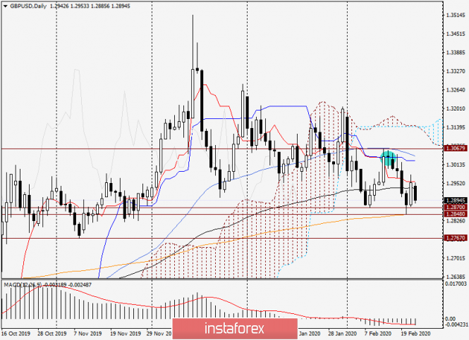 На дневном графике, как и предполагалось ранее, пара нашла сильную поддержку в ценовой зоне 1.2780-1.2750, после чего начала восстанавливаться и продемонстрировала в пятницу неплохой рост. Хотя это заслуга не фунта стерлинга, а слабость доллара США, который 21 февраля снизился по широкому спектру рынка.