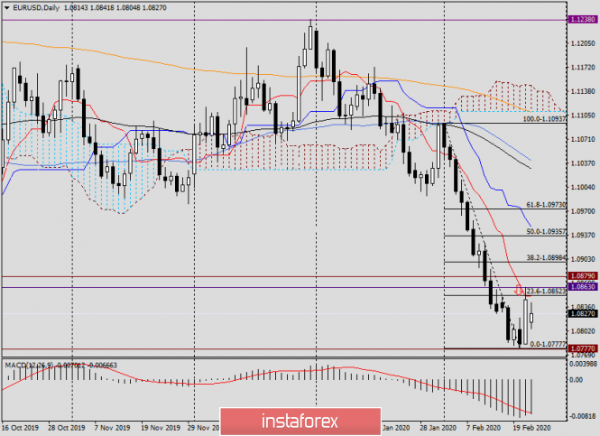 Если вернуться к технической картине на дневном графике, то ближайшее сопротивление представлено линией Тенкан, уровнем 23.6 фибо от падения 1.1094-1.0777, а также ценовой зоной 1.0863-1.0879.