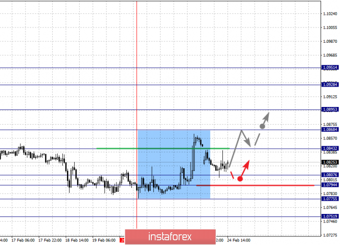 По паре Евро/Доллар ключевыми уровнями в масштабе Н1 являются: 1.0951, 1.0928, 1.0895, 1.0868, 1.0843, 1.0807, 1.0794, 1.0775 и 1.0751. Здесь мы следим за формированием начальных условий для верха от 20 февраля. Продолжения движения кверху ожидаем после пробоя 1.0843, в данном случае цель – 1.0868, пробой которой, в свою очередь, приведет к движению до уровня 1.0895, возле этого уровня консолидация. Пробой 1.0895 должен сопровождаться выраженным восходящим движением, здесь цель – 1.0928. Потенциальным значением для верха считаем уровень 1.0951, по достижении которого ожидаем откат книзу.