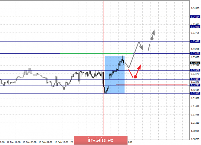Краткосрочное нисходящее движение возможно в коридоре 1.3266 – 1.3241, диапазон 1.3241 – 1.3224 является ключевой поддержкой для восходящей структуры, его проход ценой будет располагать к развитию нисходящего движения, в данном случае цель – 1.3201.