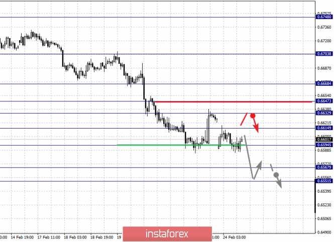 По паре Австралийский доллар/Доллар ключевыми уровнями в масштабе Н1 являются: 0.6668, 0.6647, 0.6632, 0.6614, 0.6594, 0.6567 и 0.6551. Здесь мы следим за нисходящей структурой от 12 февраля. Консолидированное движение ожидаем в коридоре 0.6614 – 0.6594, пробой последнего значения приведет к выраженному нисходящему движению, здесь цель – 0.6567. Потенциальным значением для низа считаем уровень 0.6551, по достижении которого ожидаем консолидацию, а также откат кверху.