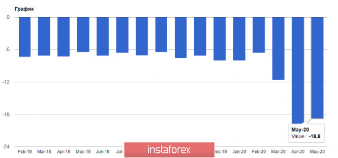 Несмотря на отмену некоторых ограничений, которые были введены из-за пандемии коронавируса, индекс доверия в промышленности еврозоны в мае этого года немного вырос и составил -27,5 пункта против -32,5 пункта в апреле, а прогнозировался на уровне -27,0 пункта. Что касается сферы услуг, то тут ситуация только ухудшилась. Там индекс доверия в мае обвалился сразу до -43,6 пункта против -38,6 пункта в мае. Если брать отдельно показатель по потребительскому доверию, то оно немного выросло, хотя и осталось на довольно пессимистичном уровне. Согласно данным, индекс потребительского доверия в еврозоне в мае этого года составил -18,8 пункта, полностью совпав с прогнозами экономистов, против -22,0 пункта в апреле.