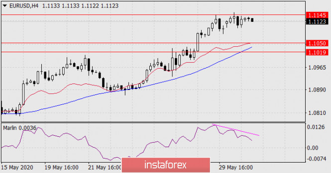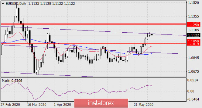 После отката евро вновь может пойти на атаку вчерашнего максимума и продолжить рост в целевой диапазон 1.1250/65. Если, конечно, Марлин на дневном графике не уйдёт в опережающее пике.